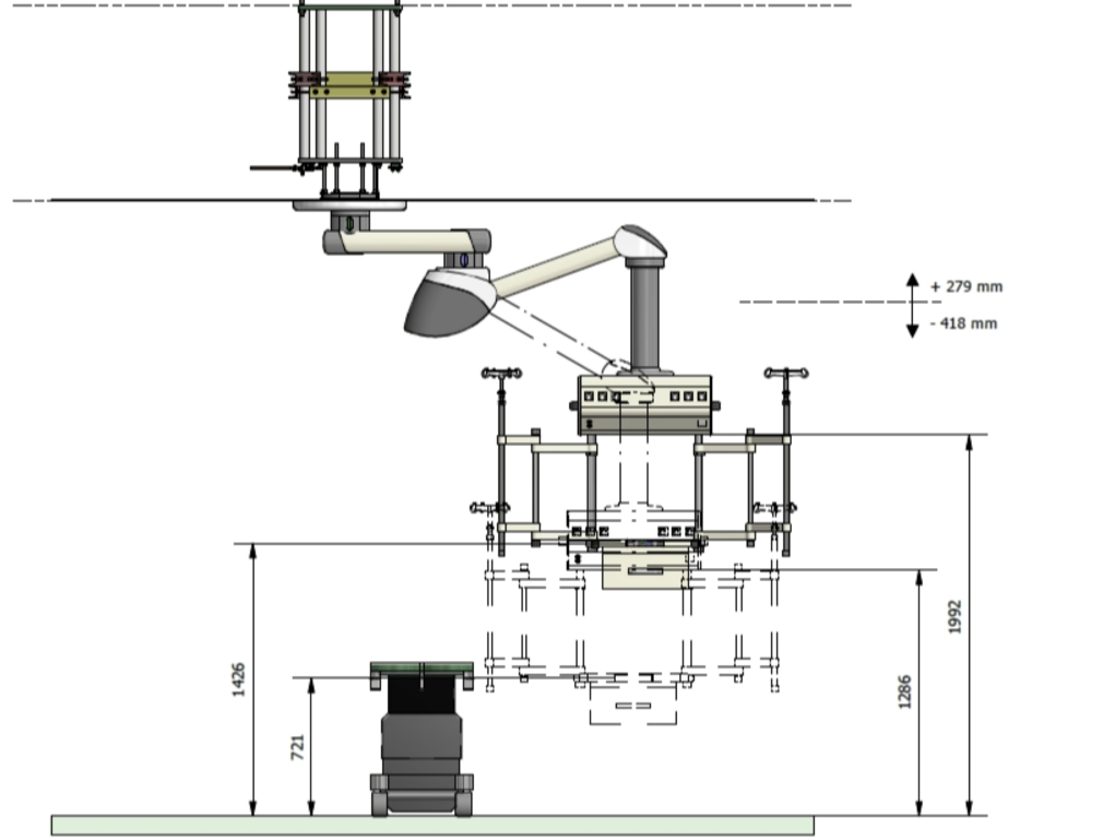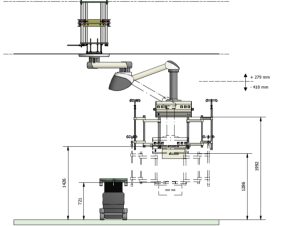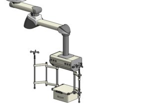 Des tubes verticaux permettent de positionner des tablettes et des bras de support latéraux.